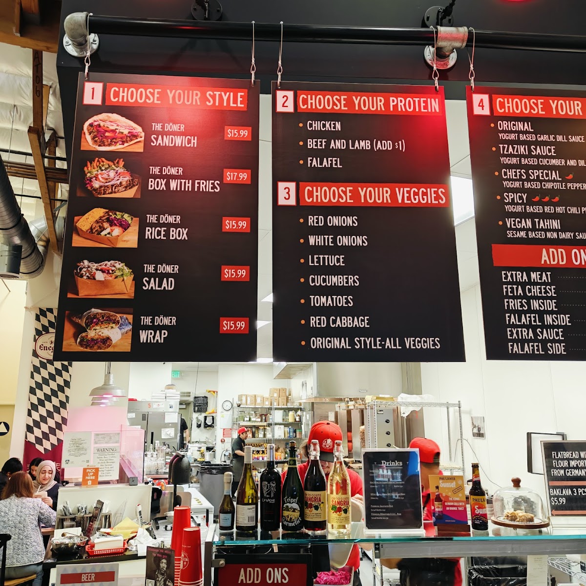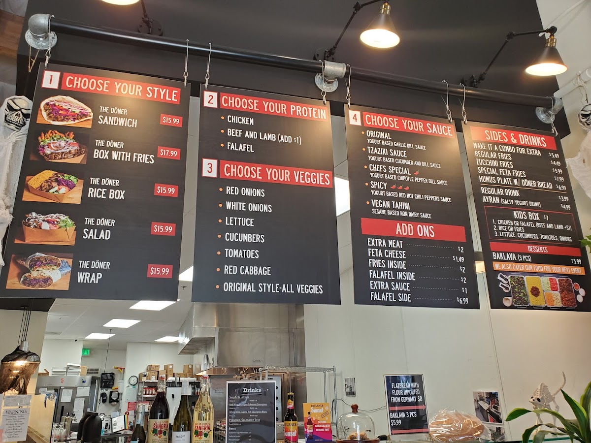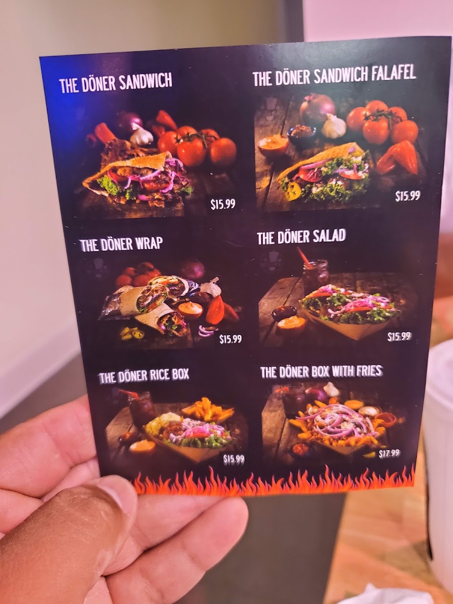Combo with loaded fries, option of Döner sandwich/wrap/salad/rice box/box with fries. Choose from beef and lamb, chicken, or falafel. Customize veggies and sauce. Includes a variety of drink options.