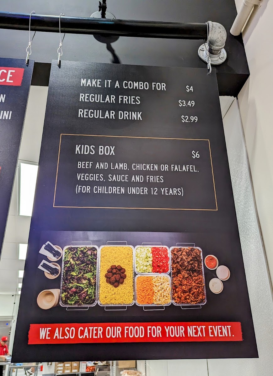 The döner rice box comes with your choice of beef and lamb, chicken, or our homemade falafel. Accompanied by our assorted vegetables and sauces.